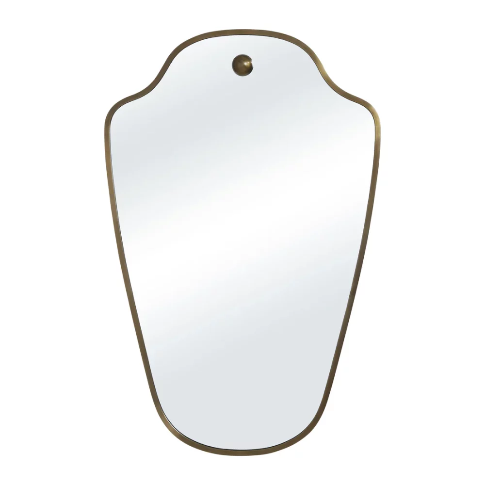 Introduce striking character to your space with the Elodie wall mirror, defined by its shield-like form and dark antique brushed brass finish. The iron frame’s rich, timeworn sheen adds depth and artistry, while the unique silhouette offers a sculptural focal point. Ideal for entryways, living spaces or bedrooms, this mirror infuses any interior with bold, refined style.